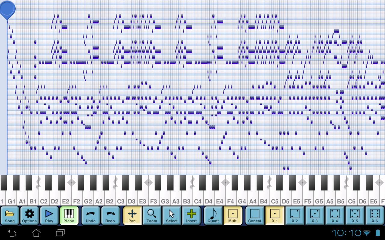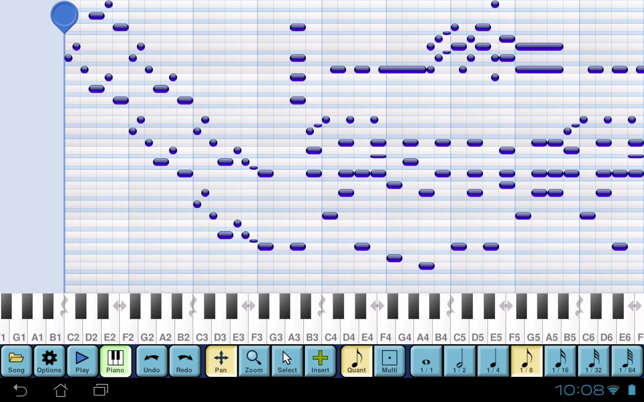 MusePad 메모를 표시하기위한 피아노 롤 스타일 그리드 및 입력을위한 피아노 키보드를 사용합니다. 당신은 피아노를 사용하여 노트를 입력하고 그들이 메모 그리드에 나타납니다. 그 후, 당신은 그리드에서 직접 노트를 삭제하거나 그리드 눌러 더 많은 노트를 추가 할 수 있습니다.