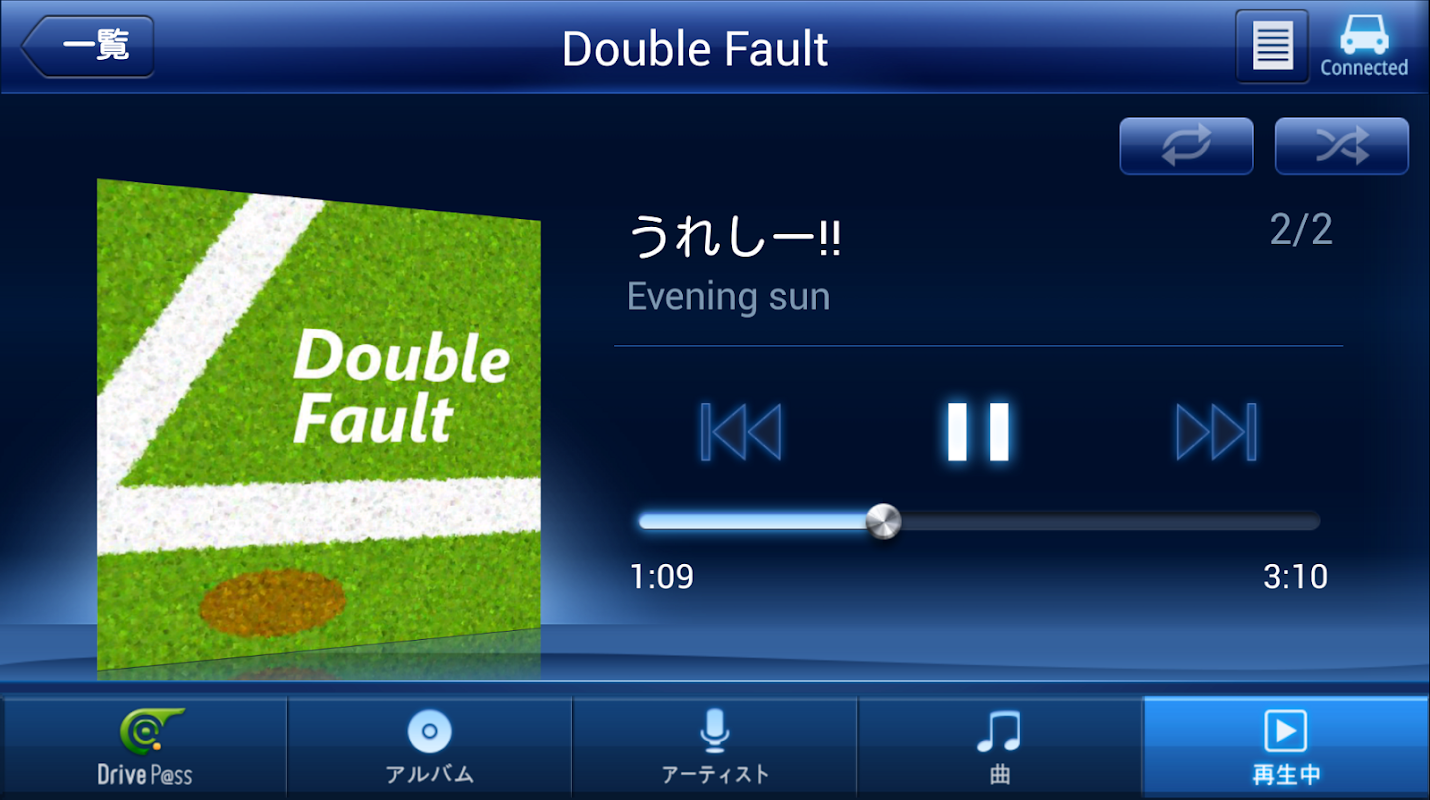 스마트폰 내의 음악 데이터를 재생하는 앱입니다. 「Drive P@ss」대응의 카 내비게이션과 접속하는 것으로, 자동차의 스피커를 통해 음악을 즐길 수 있습니다.