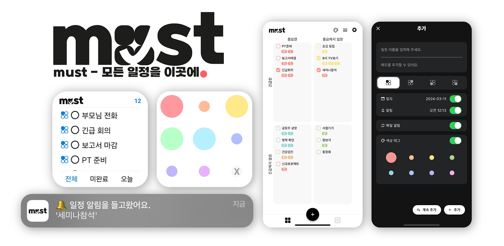 쉽고 편리한 "must"로 모든 일정을 효과적으로 관리하세요.