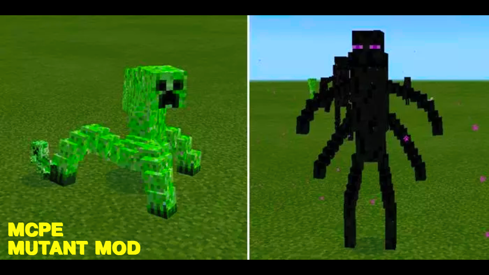 Mutant Mod will make changes to the Minecraft PE game world in the form of adding 18 mutants. A distinctive feature is that all mutants have different sizes. Also, all these creatures mutated from the usual mobs of Minecraft. Now the new mutants of the previous mobs will become even stronger and more terrible, they are very dangerous in appearance, but in battle each of them has its weak points, so that you will not be bored.
