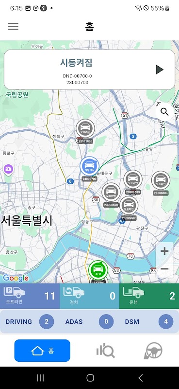 차량의 위치와 상태를 실시간 모니터링 하고 주요 이벤트를 빠르게 파악합니다.