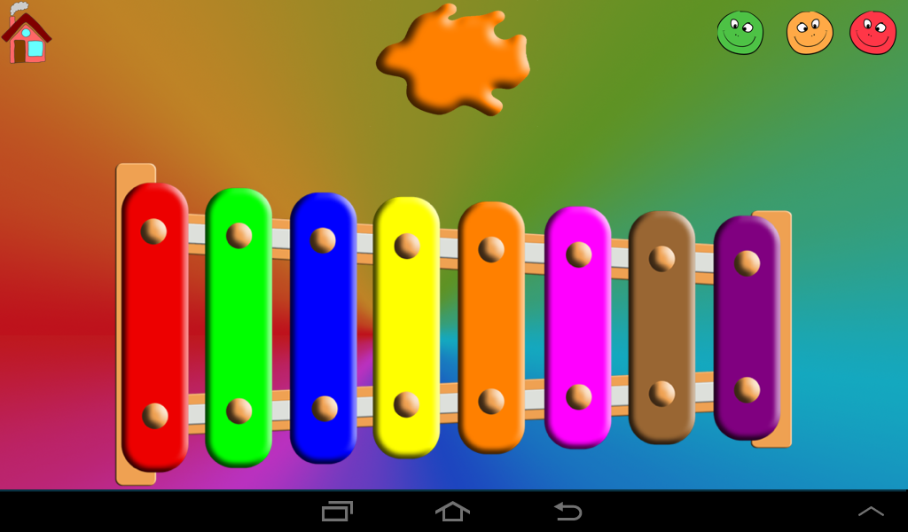 Aprender los colores nunca fue más divertido. En la parte superior se muestra el color que el niño debe tocar en el xilófono. Tiene tres niveles de dificultad, que se pueden activar con las caritas en la parte superior derecha.