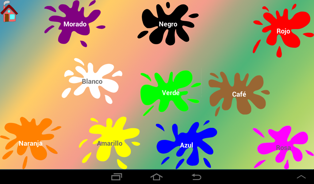 Esta pantalla de la aplicación permite identificar los colores, permite ver como se escriben y escucharlos.