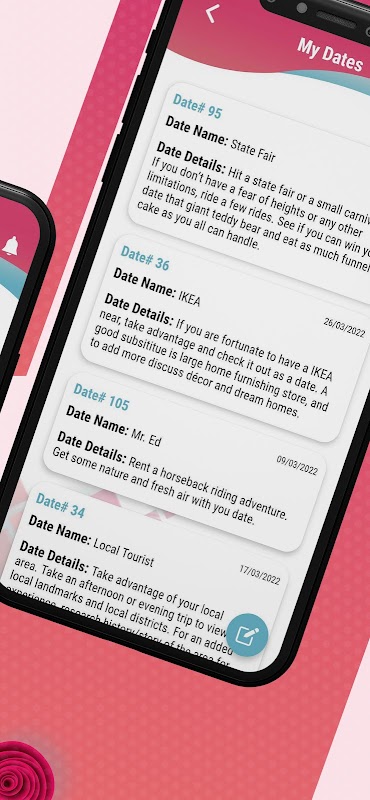 Get random date ideas with a complete dating guide. Get end to end assistance on how to facilitate and schedule date. Rate date suggestion, and share your date experience in an extensive community. Be part of an exclusive rewards program, and get notifications reminders plus actions in app