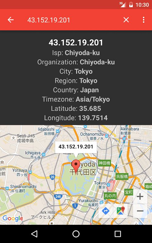 지도 내부에 직접 IP 위치를 표시하는 Google 지도에 내장되어 있습니다.