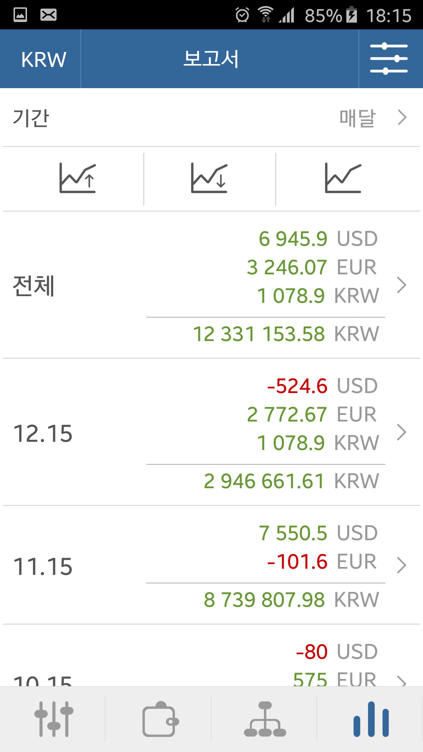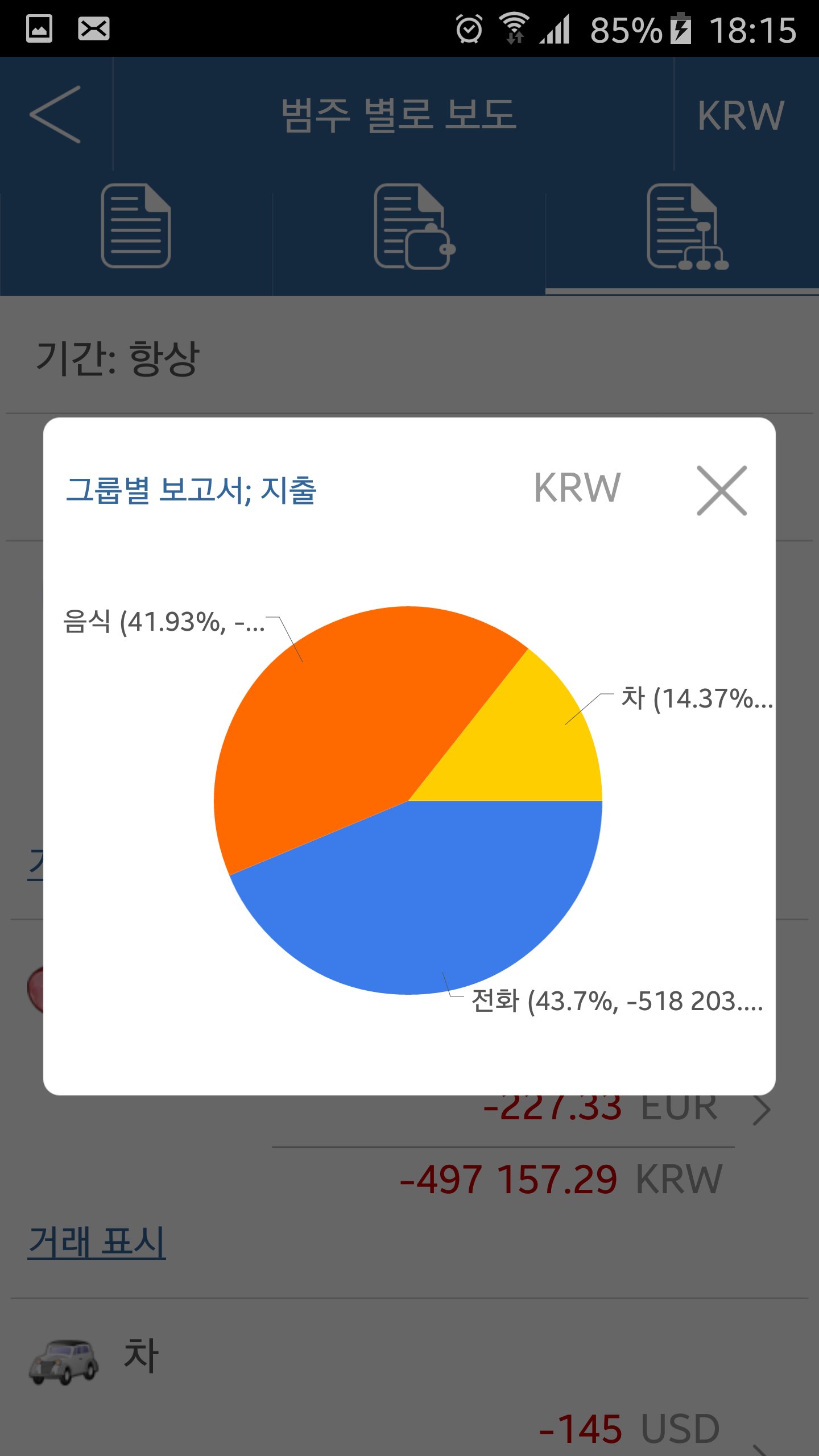 - 계정, 통화, 범주 별로수입지출그래픽 보고