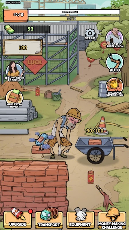 This is a 2D simulation job game where you can earn money to enhance your own attributes. By improving various attributes, you can increase your earning speed, become a CEO, marry Bai Fumei, and reach the peak of your life! Game objective: To operate reasonably and earn more money.