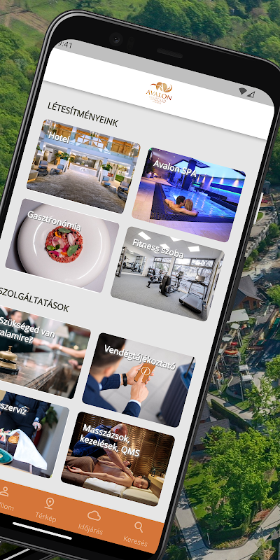다음 휴가지는 탭 한 번이면 됩니다. MyAvalon 애플리케이션을 다운로드하면 Miskolctapolca에 위치하고 온 가족이 개인화된 경험을 즐길 수 있는 단지 단위(웰니스, 엔터테인먼트 및 요리법)의 서비스에 대해 알아보는 데 사용할 수 있습니다.