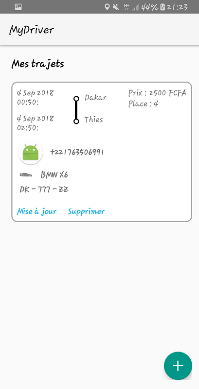 - Affichage des informations du driver et de notifications