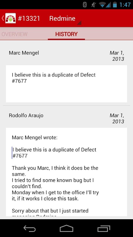 - Read/Use/Write/Authenticate accounts: your Redmine servers are managed as Android accounts, for better integration, seamless syncing and battery savings