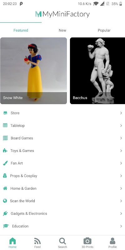 MyMiniFactory 앱은 깨끗한 브라우징 환경을 제공하여 수천 개의 보장 된 3D 인쇄 가능한 객체를 검색하고 탐색 할 수 있도록합니다.