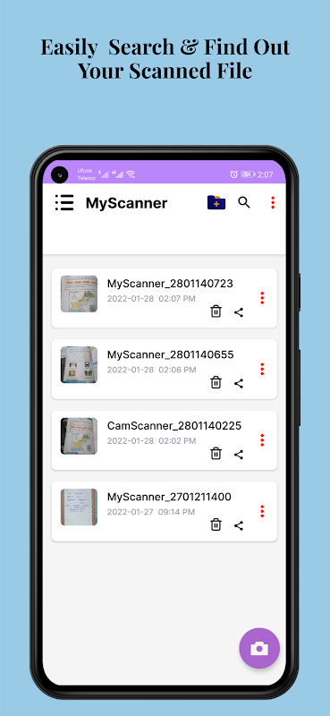 Free PDF Scanner gives you free advance document editing features. *When you have a bundle file or documents MyScanner App can quickly search your specific file.