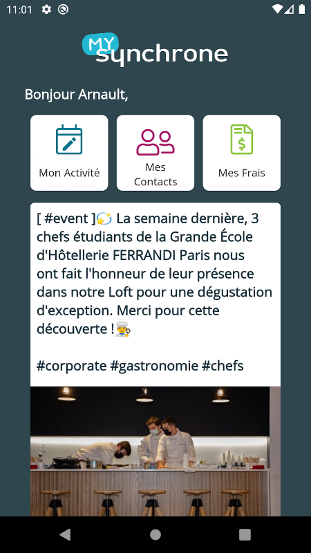 Synchrone 직원 전용 모바일 응용 프로그램 인 MySynchrone은 직관적 인 경험과 전문적인 삶의 유용한 기능 덕분에 일상 생활을보다 쉽게 만들어줍니다.