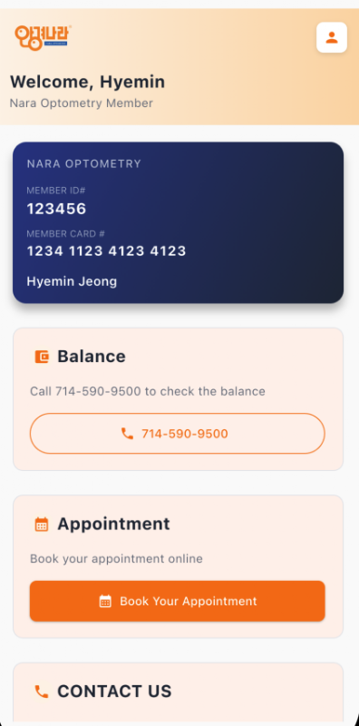 나라옵토메트리 멤버십 카드 앱