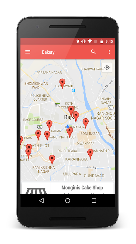 This app use Google Maps™ and Places API to find and plot locations and accuracy of the data provided by Google Maps™.