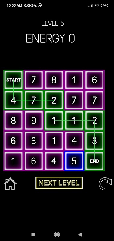 이 게임에서는 초기 에너지량이 주어집니다. 움직일 때마다 세포에 적힌 숫자인 에너지가 소모됩니다. 게임의 목표는 에너지가 0 아래로 떨어지기 전에 종점에 도달하는 것입니다. 종점에 도달할 수 있는 방법은 여러 가지가 있지만 주어진 양의 에너지로 종점에 도달할 수 있는 방법은 하나뿐입니다.