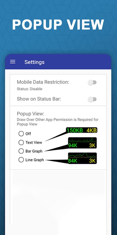 Net Meter는 실제 인터넷 연결 속도를 알려주는 실시간 인터넷 속도 측정기입니다. 인터넷 속도 측정기를 사용하면 상태 표시 줄, 팝업 창 및 알림 패널을 통해 인터넷 연결 속도를 확인할 수 있습니다. net meter를 사용하여 Wi-Fi 또는 모바일 데이터 연결 속도를 쉽게 테스트 할 수 있습니다. 또한이 인터넷 속도 테스트 애플리케이션으로 지난 30 일 데이터 사용 내역을 추적 할 수 있습니다. 넷 미터로 인터넷 실제 다운로드 및 업로드 속도를 테스트하십시오. 인터넷 속도 테스트 기능은 인터넷 연결 시드를 측정하고 정확한 실제 인터넷 시드를 표시하는 데 몇 초가 걸립니다. 인터넷 속도 측정기는 Android 기기의 시간 속도를 표시하는 다양한 방법이 있습니다. 휴대폰의 상태 표시 줄, 팝업 창 및 알림 패널에서 인터넷 슬 레드 미터를 볼 수 있습니다. 그것은 사용자 정의 기능을 사용하여 색상 다운로드 및 업로드 속도 색상 및 그래프 스타일을 변경할 수 있습니다. Net Meter는 인터넷 속도 측정기 일뿐만 아니라 Android 장치 용 인터넷 속도 측정 도구의 전체 패키지입니다.