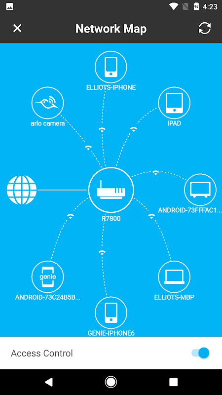 The NETGEAR genie app is an easy way to manage, monitor, and repair your home network--from the palm of your hand. While on your home network, the NETGEAR genie app allows you to access router features with your mobile device. You can access the following router settings using the NETGEAR genie app: wireless settings, network map, Parental Controls, guest access, traffic metering, MyMedia, and more.