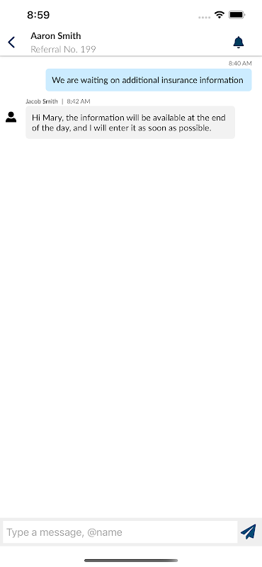 CareChat은 사용자가 Referral Manager를 떠나지 않고 안전하게 통신할 수 있도록 합니다. 채팅 기능은 현재 여러 Netsmart 응용 프로그램과 자체 독립형 모바일 앱에서 작동하도록 구축되고 있습니다. 채팅 기능은 협업을 강화하고 효율성을 높이며 빠른 커뮤니케이션을 제공합니다.