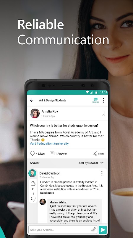 You have access to your joined groups or create a new group. In each group, you will be able to ask a question or create a new post. Don’t forget to set appropriate hashtags to your posts and questions to receive the best engagement by other users.