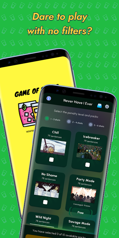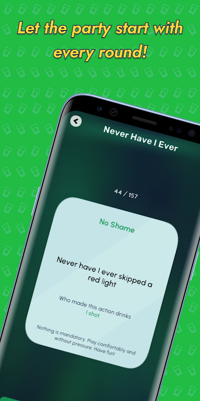 친구들과의 파티나 모임에 활기를 더할 재미있고, 과감하며, 웃음 가득한 게임을 찾고 있다면, 바로 이 무료 앱이 정답입니다. Never Have I Ever는 잊을 수 없는 순간을 보장하는 독창적인 문장들로 전설적인 술자리 게임을 한 단계 더 발전시켰습니다.