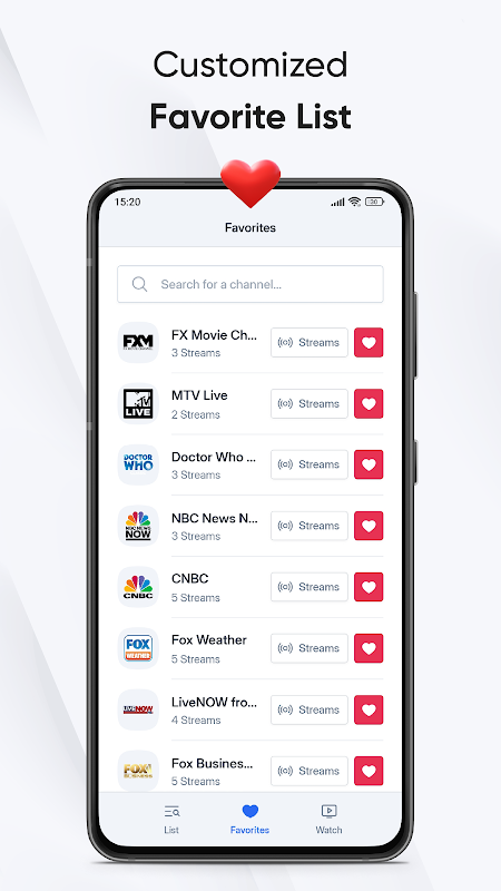 언제든지 빠르게 액세스할 수 있도록 즐겨찾는 채널을 저장하세요. 즐겨찾는 스트림을 함께 모아 더욱 편안한 시청 경험을 제공합니다.