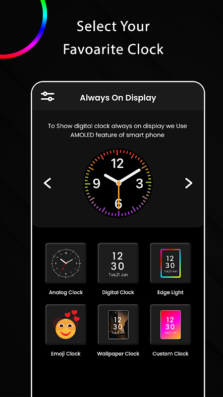 LED 디지털 시계 앱은 집과 잠금 화면에 다양한 유형의 특수 가장자리 조명 효과를 제공합니다. 좋아하는 조명 효과를 선택하고 단 한 번의 클릭으로 설정하세요.
