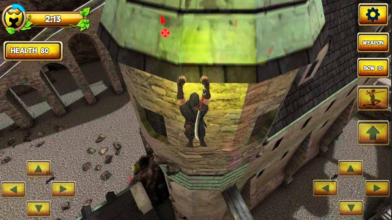 수영, 등반 및 성의 비밀 입구를 발견하십시오. 지하 터널을 사용하고 다리를 오르고 그림자의 진정한 닌자 전사로 보이지 않도록 노력하십시오.