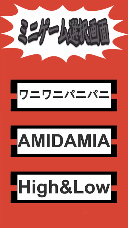 ②아미다미아는 인원수를 3~7명용으로 선택할 수 있으며, 인원수를 선택하면 볼이 움직이는 장면으로 천이합니다. 거기서, 각자, 볼의 색을 선택해, 마지막 지시 화면의 색을 선택한 사람이 벌 게임이라고 하는 것 같은 게임이 되고 있습니다.