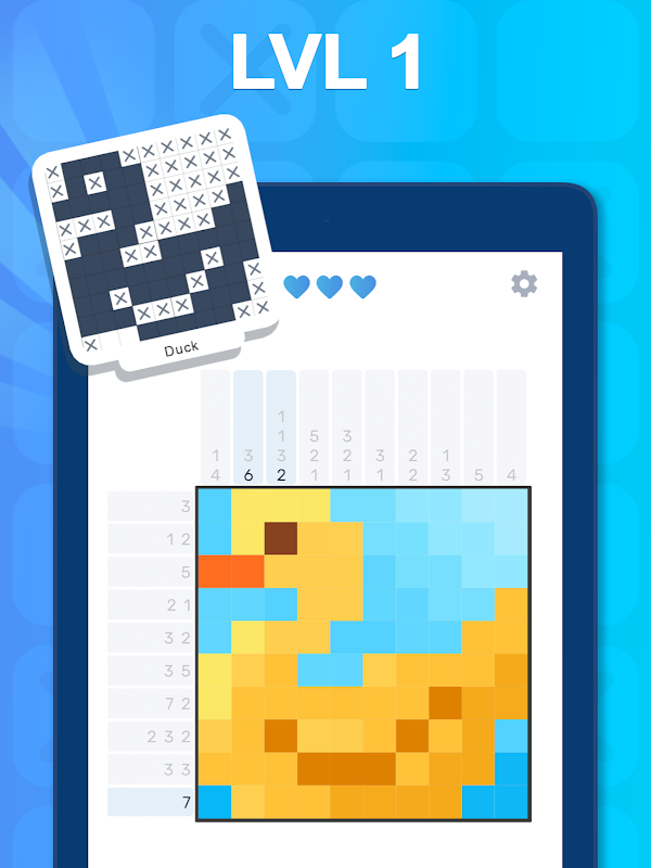 노노그램 퍼즐은 숫자로 색상을 지정하여 그림을 완성한다는 간단한 규칙과 함께 다양한 일본 퍼즐을 즐길 수 있는 게임입니다!