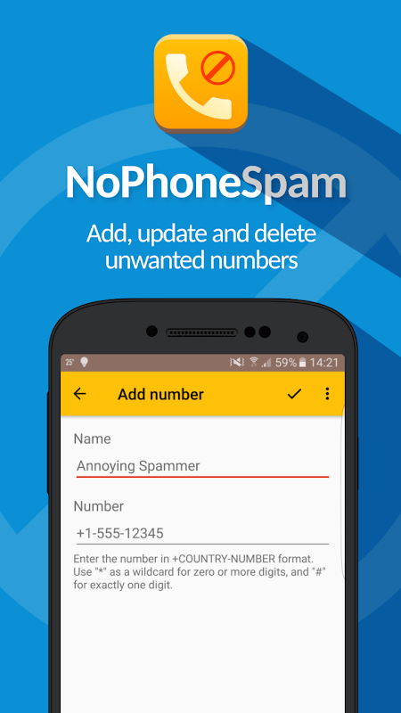 NoPhoneSpam suppresses unwanted calls. Get rid of phone spam and people you don't want to talk with. Just block them. You can determine if you want to see that someone called or even block any notification. NoPhoneSpam is focused on simplicity! It's not cluttered with hundreds of unused features and we don't use any ads.