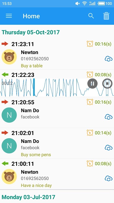 Note Call Recorder Full Free is an automatic call recorder which will help you to note call, block call and record call automatic with a simple interface, easy to use, clear voice: