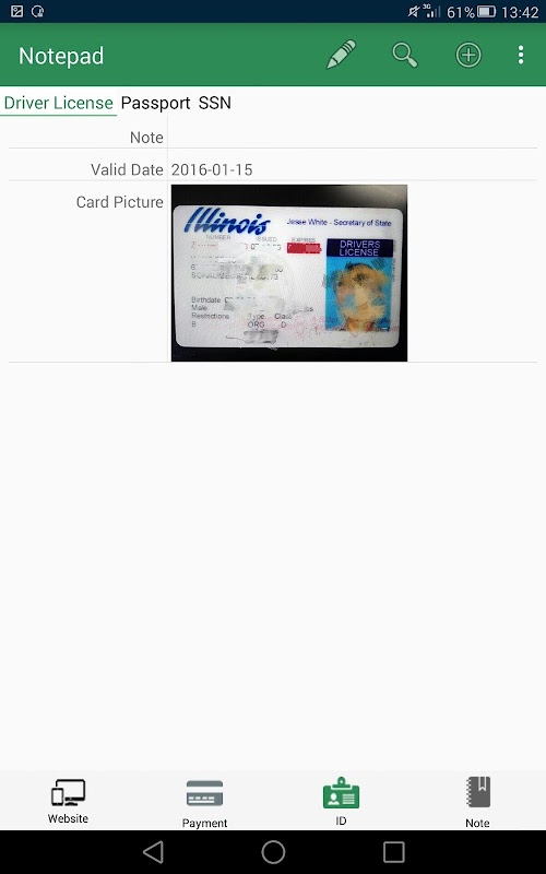 Notepad is a convenient tool to manage personal information like website account and password, credit card information, membership card information, drivers license, passport information... Template is provided to facilitate the save of different kind of information. Notepad support save picture. Don't what to input text? just take a photo and save it. All your information is protected with 256-bit AES encryptionpassword and save on local device, don't worry the information disclosure on internet.