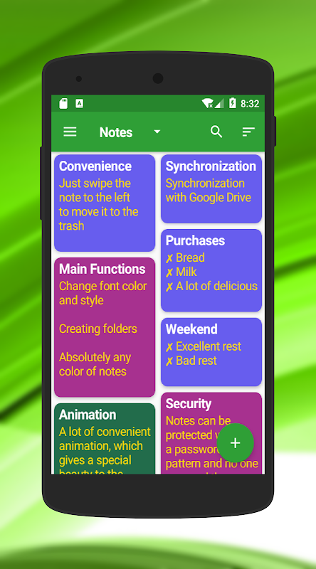 그것은 편안하고 아름다운 동기화 빠른 메모장입니다. 당신은 색상, 글꼴 등을 사용자 정의 할 수 있습니다 순서에 따라 절대적으로 모든 시설과 인터페이스 얻을 수 있습니다.