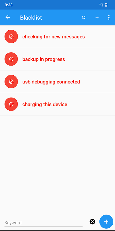 • 블랙리스트: 특정 텍스트나 키워드가 포함된 알림을 무시하는 기능