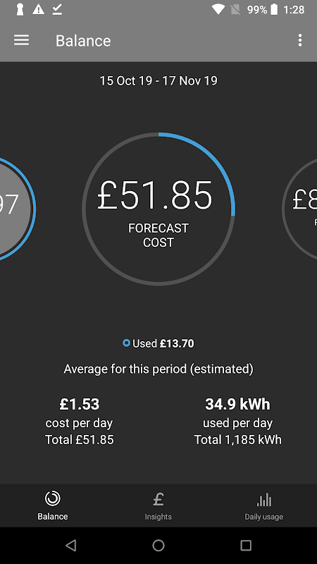 ~ Compare your energy use with previous days, weeks or months and see your estimated future use.