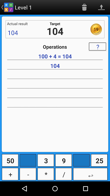 덧셈, 뺄셈, 곱셈과 나눗셈 : 그것의 목표는 여섯 초등학교 산술 연산과 숫자를 조합 한 대상 번호에 도달하는 것입니다. 대상 수에 도달하면 다음 단계로 이동합니다.