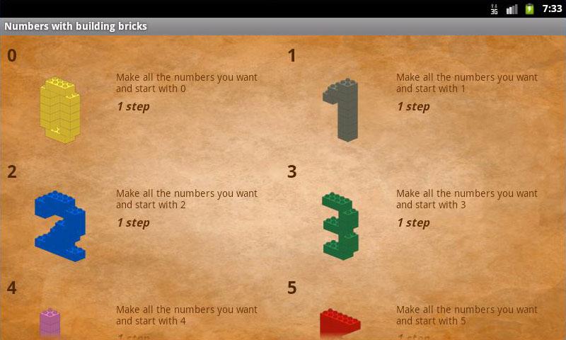 Build numbers with step-by-step instructions. Playing is fun and will add a lot the development of motoric skills. This puzzle game is really for all ages. Bring the bricks together and follow the color pattern. Form all numbers and make larger numbers. Learn to count while playing. All numbers are available: 1, 2, 3, 4, 5, 6, 7, 8, 9, 0.