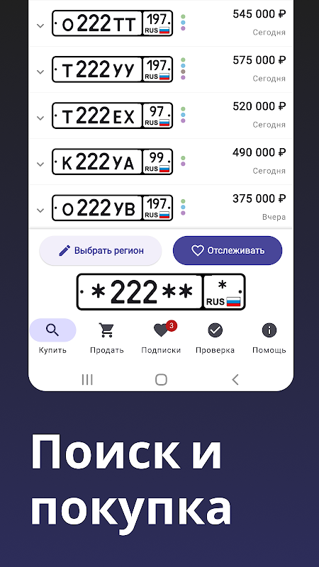 - 판매할 번호판을 등록하세요! 2021년부터 저희는 고객의 번호판 판매를 지원해 왔습니다. 매달 15만 건 이상의 검색이 저희 애플리케이션에서 이루어집니다!