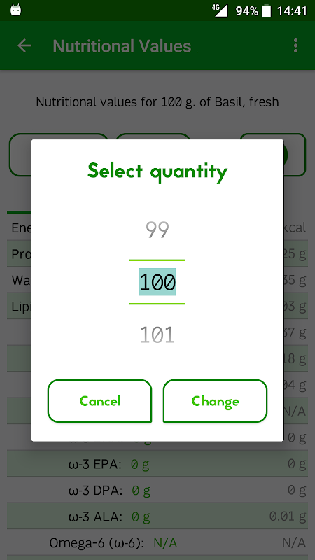 ✓ Configurable amounts: choose the quantity of every food to check its nutritional facts. Customizable gram by gram.