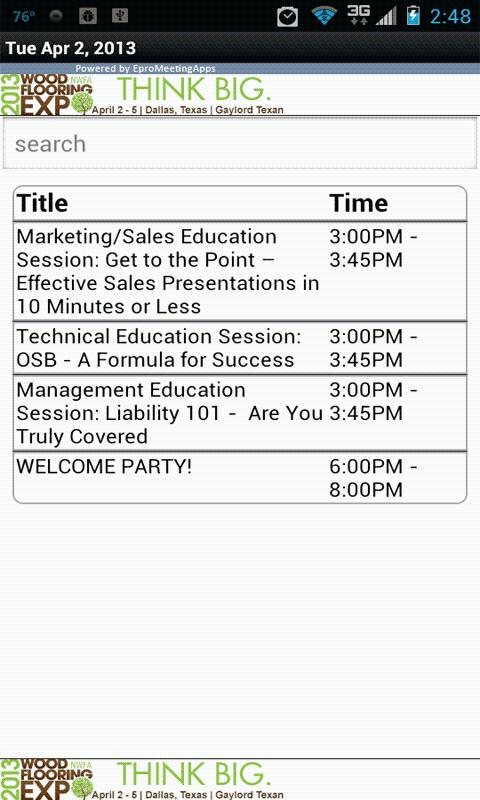 National Wood Flooring Association is the official app provider for the NWFA Expo, April 2-5, 2013, at the Hotel-Gaylord Texan, in Dallas, TX.