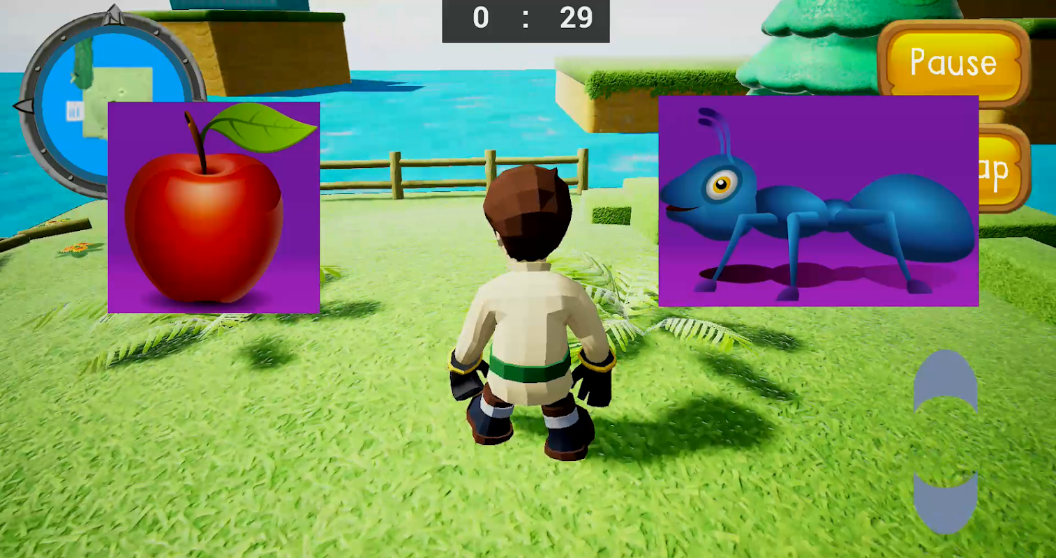 여기. 이것은 어린이 학습 게임입니다. 아이들이 빨리 배울 수 있도록 쉽게 교육을 제공하는 것이 우리의 야망입니다. 하지만 이 게임도 그렇게 쉬운 게임은 아닙니다. 플레이어가 실패하고 물에 빠지면 그는 죽을 것입니다. 아이들은 조심하는 방법을 듣게 될 것입니다. 그들은 기술에 적응할 수 있을 것입니다. 이 게임에서 사람들은 오른쪽, 왼쪽, 앞으로, 뒤로 플레이어의 움직임을 제어할 수 있습니다. 플레이어는 여기에서 점프하여 게임을 일시 중지할 수도 있습니다. 플레이어는 물에 빠지지 않도록 조심스럽게 움직여야 합니다. 플레이어는 다음 단서 또는 알파벳의 위치에 대한 미니 맵과 빅 맵을 확인할 수 있습니다. 플레이어가 알파벳을 터치하면 알파벳이 사라지고 애니메이션이 재생됩니다. 애니메이션은 알파벳과 우리가 그것을 사용하는 방법을 소개합니다. 애니메이션을 재생한 후 지도는 알파벳의 다음 위치를 업데이트합니다. 이것은 "A"에서 "Z"까지 알파벳 단어로 이동하고 게임을 완료합니다