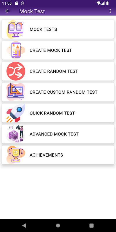 - 다양한 앱 사용 모드, 즉 챕터별, 클래스별 및 모의 테스트 모드 제공