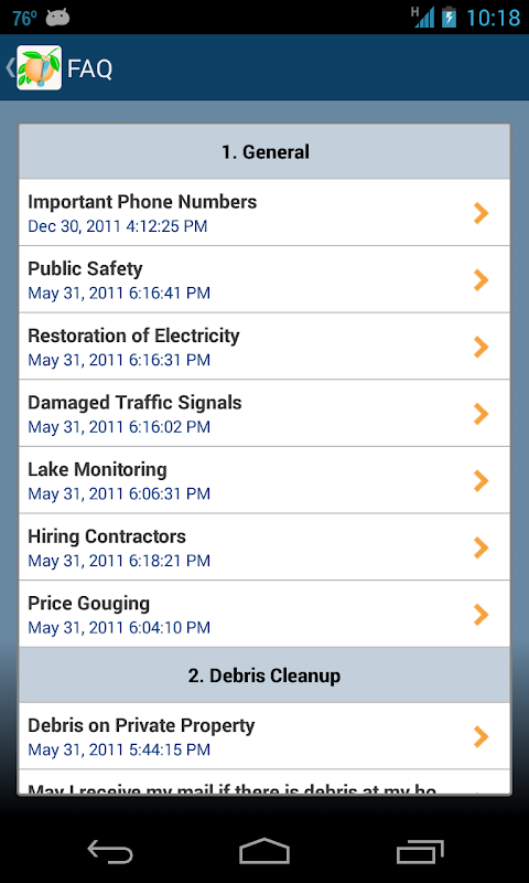 * 심한 날씨, 교통, 피난, 황색 및 종기 물 알림 메시지 등, 오렌지 카운티 비상 관리자에서 중요한 최신 정보를받을 수 있습니다.