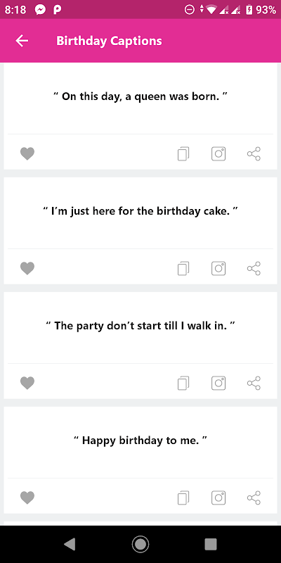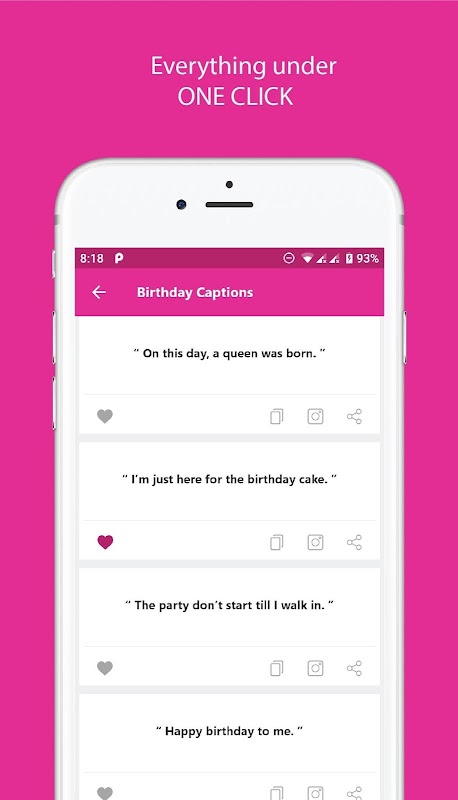Save your favorite caption for later use, list out your best quotes, directly post to instagram, facebook, copy feature.
