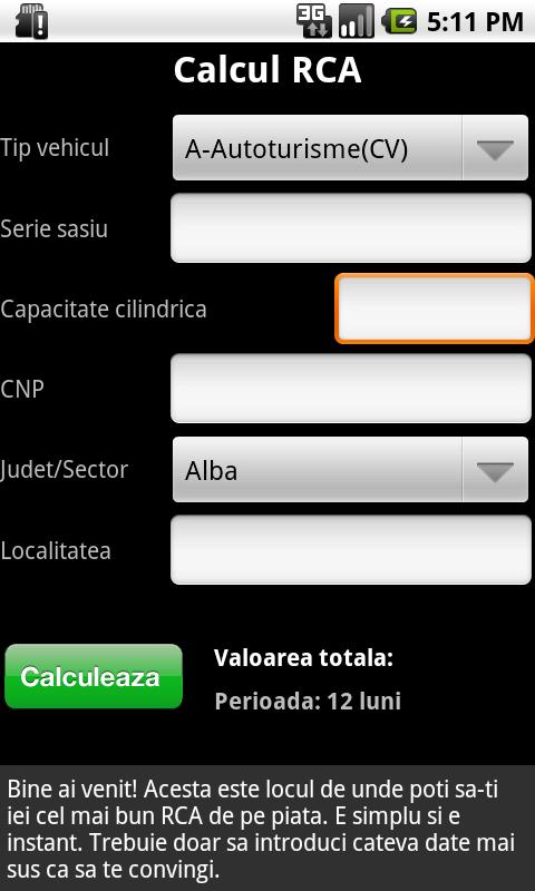 The application is developed in four sections, "Retea teritoriala", where you will find information about OMNIASIG agencies, "In jurul meu" that know points you the nearest OMNIASIG agency, "Calcul RCA" box offers a price quote for RCA insurance.