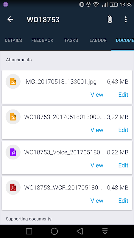 -작업 주문 피드백 제공 및 시각적 피드백을위한 문서 및 사진 첨부