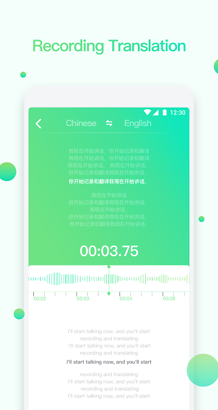 2.Tapping the recording button, your voice memo is captured and convertible to multilingual text.