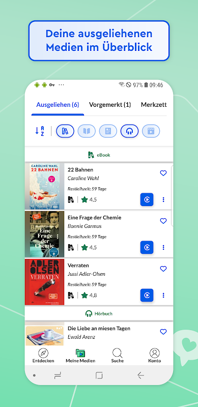 다양한 새롭고 향상된 기능을 갖춘 Onleihe 앱 3를 만나보세요.