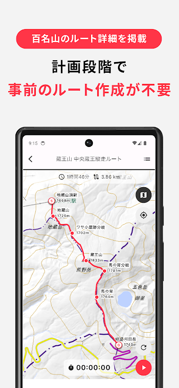 각 산의 대표적인 루트를 수록. 사전 루트 작성은 필요하지 않습니다.